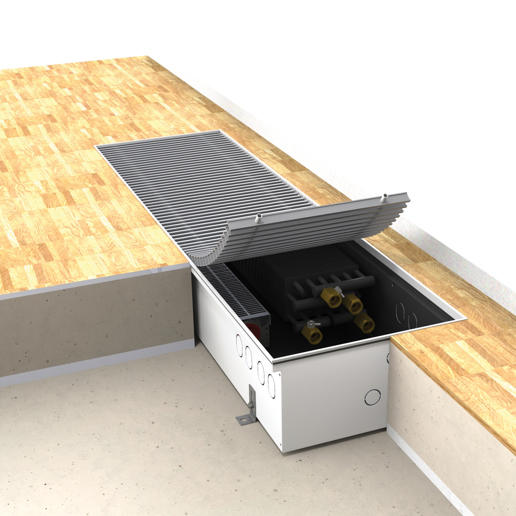 Floor fan convectors are available with or without an integrated fan, along with both heating and cooling functions. Adjustable fan options are the most common as they can provide up to four times more heat output whilst keeping fan noise to a minimum and only using a few watts. In-floor fan convectors also have the benefit of space saving, meaning they can be installed in most private homes and public environments.