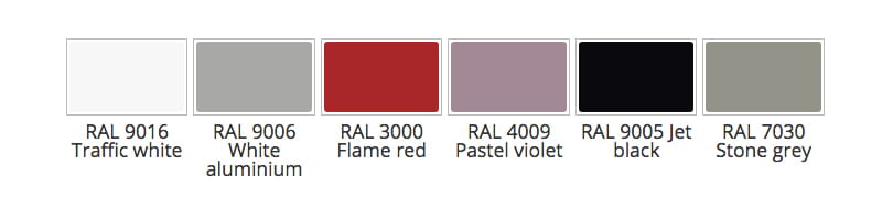 De svarta och gråa varianterna efterfrågas ofta till även vattenburna radiatorer och har därför tagits in i sortimentet för färgade elradiatorer. Trenden visar också att mer djärva färger väljs för att framhäva radiatorn i rummet. Flame Red och Pastel Violet är två kulörer som passar en modig och uttrycksfull inredning.