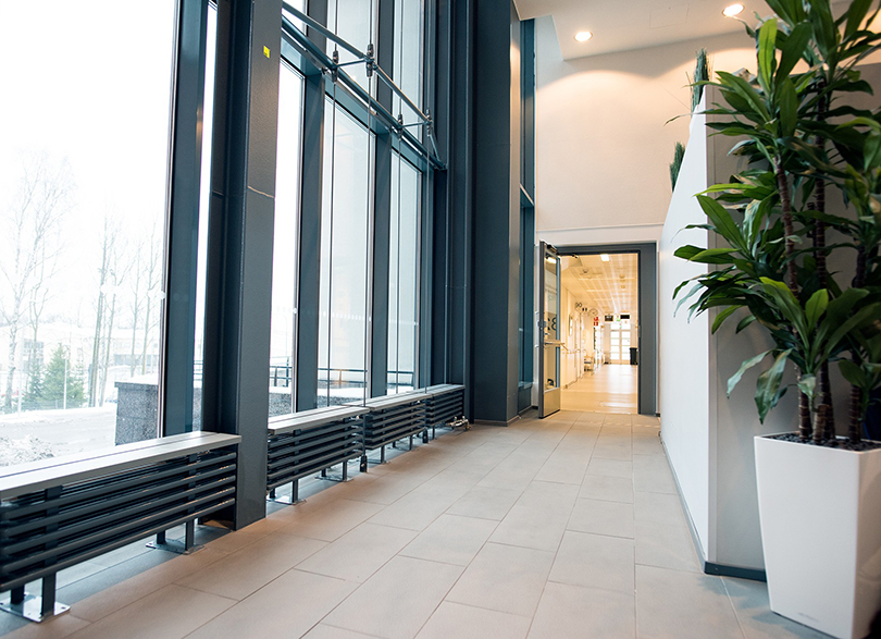 I det nya sjukhuset finns Purmo Delta Bench installerade. Bänkarna är praktiska i och med de varma och behagliga sittplatserna i bl.a. café, väntrum och korridorer. Radiatorerna håller borta kalldraget från de stora fönsterytorna samtidigt som de är snygga och passar bra in i stilen. Delta radiatorerna har erhållit hygiencertifikat då man enkelt kommer åt att rengöra alla dess ytor.